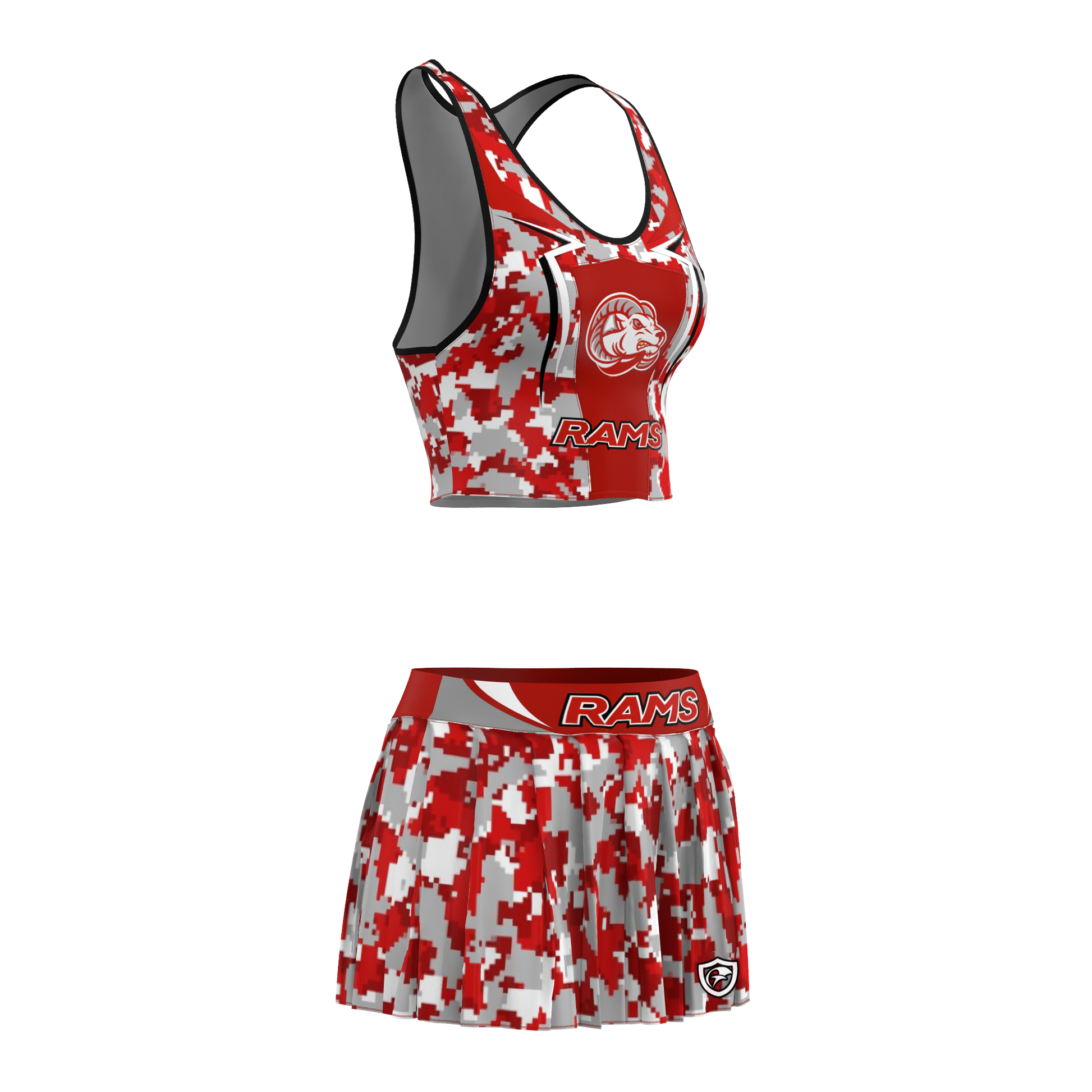 Professional cheerleading apparel designed for the elite spirit of Goulds Rams.